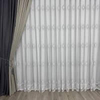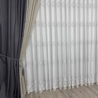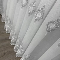 Бамбукова тюль з вишивкою Keten №7188 у вітальню, спальню сірий