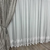 Тюль грек-сітка з вишивкою No2604 для спальні, вітальні сірий беж