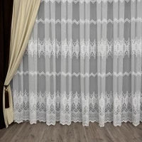 Тюль бамбук з оксамитовим візерунком по низу №7181 Молочний