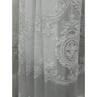 Білий бамбуковий тюль з шикарною вишивкою №6185