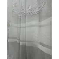 Тюль бамбук з вишивкою Keten 12-02 білий з сірим