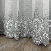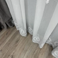 Білий бамбуковий тюль з шикарною вишивкою №6185