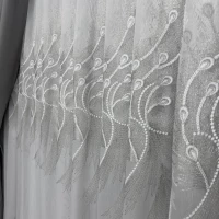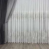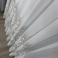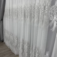 Основа гардини - бамбук, тонка та легка тканина з чітко вираженим полотняним плетінням волокон та матовою поверхнею. Смужки більш чіткі ніж основа, мають сітчасту структуру з рельєфним фактурним візерунком. Тюль виглядає повітряно, натурально, самобутньо і дуже стильно.
