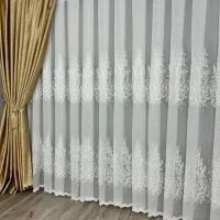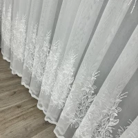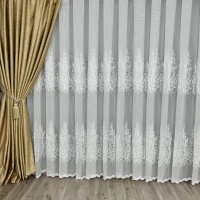 Основа гардини - бамбук, тонка та легка тканина з чітко вираженим полотняним плетінням волокон та матовою поверхнею. Смужки більш чіткі ніж основа, мають сітчасту структуру з рельєфним фактурним візерунком. Тюль виглядає повітряно, натурально, самобутньо і дуже стильно.