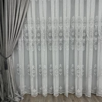 Бамбуковий тюль з шикарною вишивкою Keten №7590 сірий