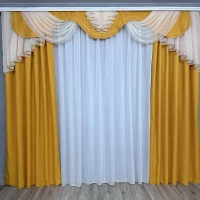 Розмір: ламбрекен на карниз 3м (не регулюєсься), дві шторки по 1,50 м шириною і 2,70 м заввишки