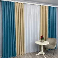 Розмір: 1,50 * 2,70 (дві штори по 0,75 см кожного кольору пошитих між собою, висота 2,70 м)