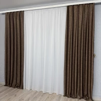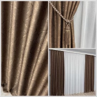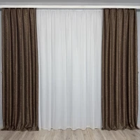 Готові штори Льон-блекаут М17 Бите скло коричневий