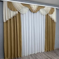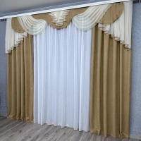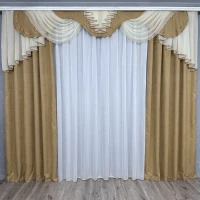 Розмір: ламбрекен на карниз 3м (не регулюєсься), дві шторки по 1,50 м шириною і 2,70 м заввишки