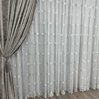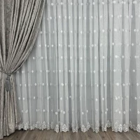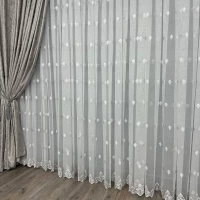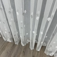 Тюль грек-сітка з вишивкою №12567 в спальню, вітальню на відріз Біло-сірий