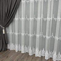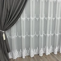 Переважно тюль комбінується з ламбрекеном та шторами. Також дуже красиво виглядає одна.