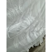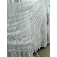 Основа гардини - бамбук, тонка та легка тканина з чітко вираженим полотняним плетінням волокон та матовою поверхнею. Смужки більш чіткі ніж основа, мають сітчасту структуру з рельєфним фактурним візерунком. Тюль виглядає повітряно, натурально, самобутньо і дуже стильно.