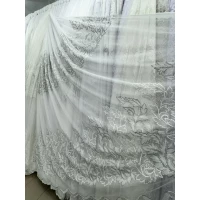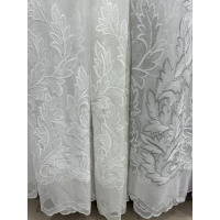 Основа гардини - бамбук, тонка та легка тканина з чітко вираженим полотняним плетінням волокон та матовою поверхнею. Смужки більш чіткі ніж основа, мають сітчасту структуру з рельєфним фактурним візерунком. Тюль виглядає повітряно, натурально, самобутньо і дуже стильно.