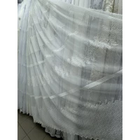 Основа гардини - бамбук, тонка та легка тканина з чітко вираженим полотняним плетінням волокон та матовою поверхнею. Смужки більш чіткі ніж основа, мають сітчасту структуру з рельєфним фактурним візерунком. Тюль виглядає повітряно, натурально, самобутньо і дуже стильно.