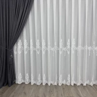 Бамбукова тюль з шикарною вишивкою №16101 у вітальню, спальню