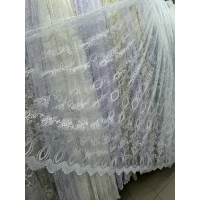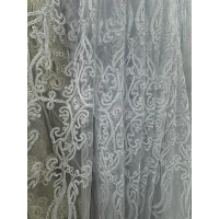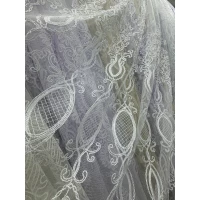 Фатинова тюль із кордовою вишивкою No161003 Білий на відріз