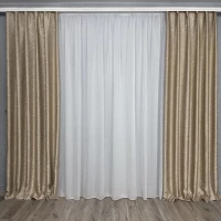 Готові штори Льон-блекаут М17 Бите скло капучіно