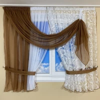 Фіранка на кухню з квітковим принтом №434 коричнева