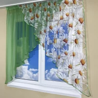 Коротка тюль з ламбрекеном на кухню №418