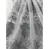 Основа гардини - бамбук, тонка та легка тканина з чітко вираженим полотняним плетінням волокон та матовою поверхнею. Смужки більш чіткі ніж основа, мають сітчасту структуру з рельєфним фактурним візерунком. Тюль виглядає повітряно, натурально, самобутньо і дуже стильно.
