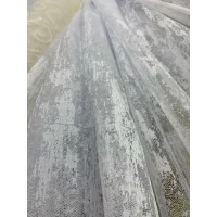 Сетчатая тюль из жаккарда с геометрическим орнаментом по всей длине тюля.