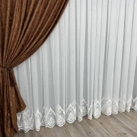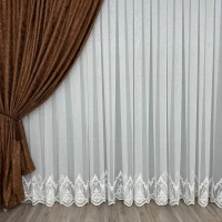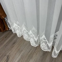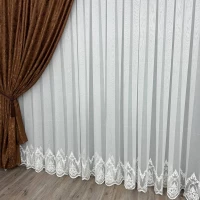 Преимущественно тюль комбинируется с ламбрекеном и шторами. Также очень красиво смотрится одна.