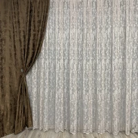 Кружевной тюль из жаккарда с цветочным орнаментом по всей длине тюля. Жаккард - это неприхотливая тюль, легко стирается, гладится. Тюль отлично подходит под разные интерьеры и отличаются невысокой стоимостью. Отличный вариант для кухни, дачи. Тюль прекрасно смотрится на окне, так и разные оттенки тюля. Выглядит воздушно и в комнате всегда много света.