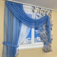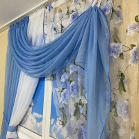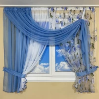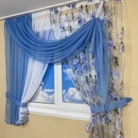 Занавеска на кухню с цветочным принтом №434 голубая