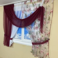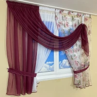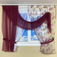 Занавеска на кухню с цветочным принтом №434 бордовая