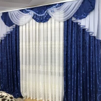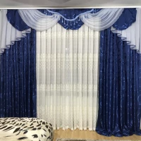 Комплект на окно №409 ламбрекен со шторами. Размер: ламбрекен на карниз 3м, шторки две по 1,50м шириной и 2,70м высотой Шторки пошиты на отдельную тесьму, можно распускать на всё окно. Ламбрекен декорирован бахромой со стеклярусом. Способ подвеса: тесьма.
