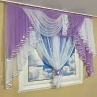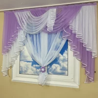 Короткая тюль с ламбрекеном на кухню №431