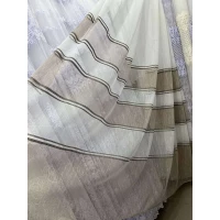 Тюль лён с жаккардовыми вставками 110424 Молочный