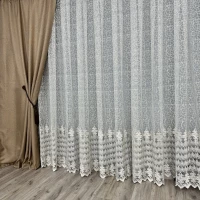 Так как в тюлях используют смешанный состав тканей она не даёт усадку и сохраняет свою форму, и тюль не деформируется даже при частых стирках