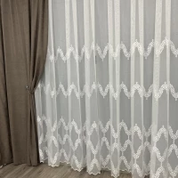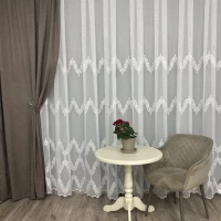 Основа гардины — тонкая и легкая ткань с четко выраженным полотняным плетением волокон и матовой поверхностью. Полоски более чёткие чем фон, имеют сетчатую структуру с рельефным фактурным узором. Тюль смотрится воздушно, натурально, самобытно и очень стильно.