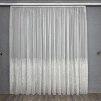 Тюль лён с жаккардовыми вставками 110424 Молочный
