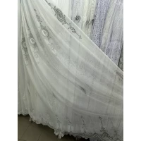 Белый бамбуковый тюль с шикарной вышивкой №6185