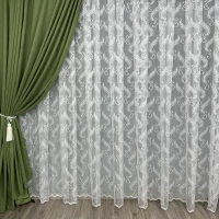Кружевной тюль из жаккарда с цветочным орнаментом по всей длине тюля.