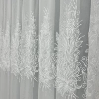 Основа гардины — бамбук, тонкая и легкая ткань с четко выраженным полотняным плетением волокон и матовой поверхностью. Полоски более чёткие чем фон, имеют сетчатую структуру с рельефным фактурным узором. Тюль смотрится воздушно, натурально, самобытно и очень стильно.