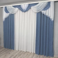 Размер: ламбрекен на карниз 3м (не регулируется), шторки две по 1,50м шириной и 2,70м высотой