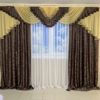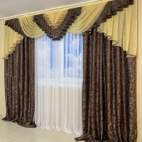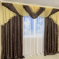 Шикарный ламбрекен со шторами в зал, спальню, гостиную №448 шоколад