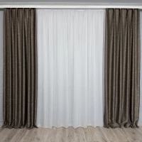 Готовые шторы Лён-блекаут М17 Битое стекло мокко