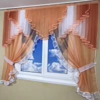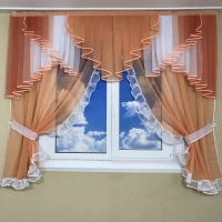 Ламбрекен с тюлем №407 оранжевый