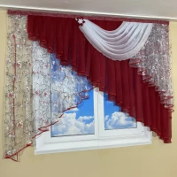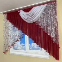 Тюль ламбрекен в детскую, на кухню №446 красный
