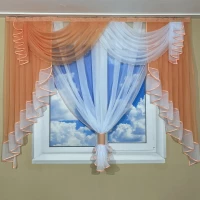 Короткий тюль с ламбрекеном на кухню Амалия