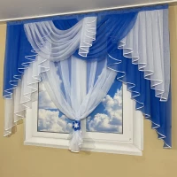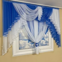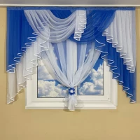 Ламбрекен с тюлем №431 на карниз 2м голубой